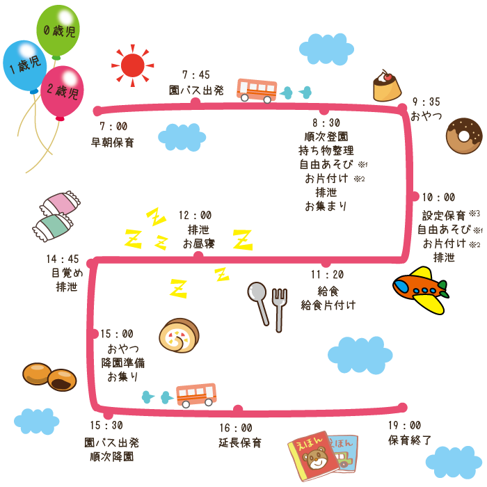 ※2 その日の保育内容に合わせるため、クラスによって時間が変わる場合があります。
