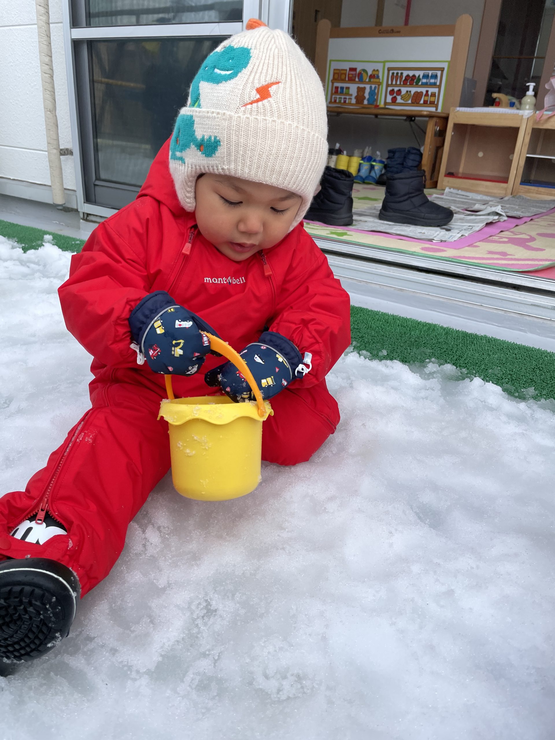 ももさんはテラスでゆきあそび♪